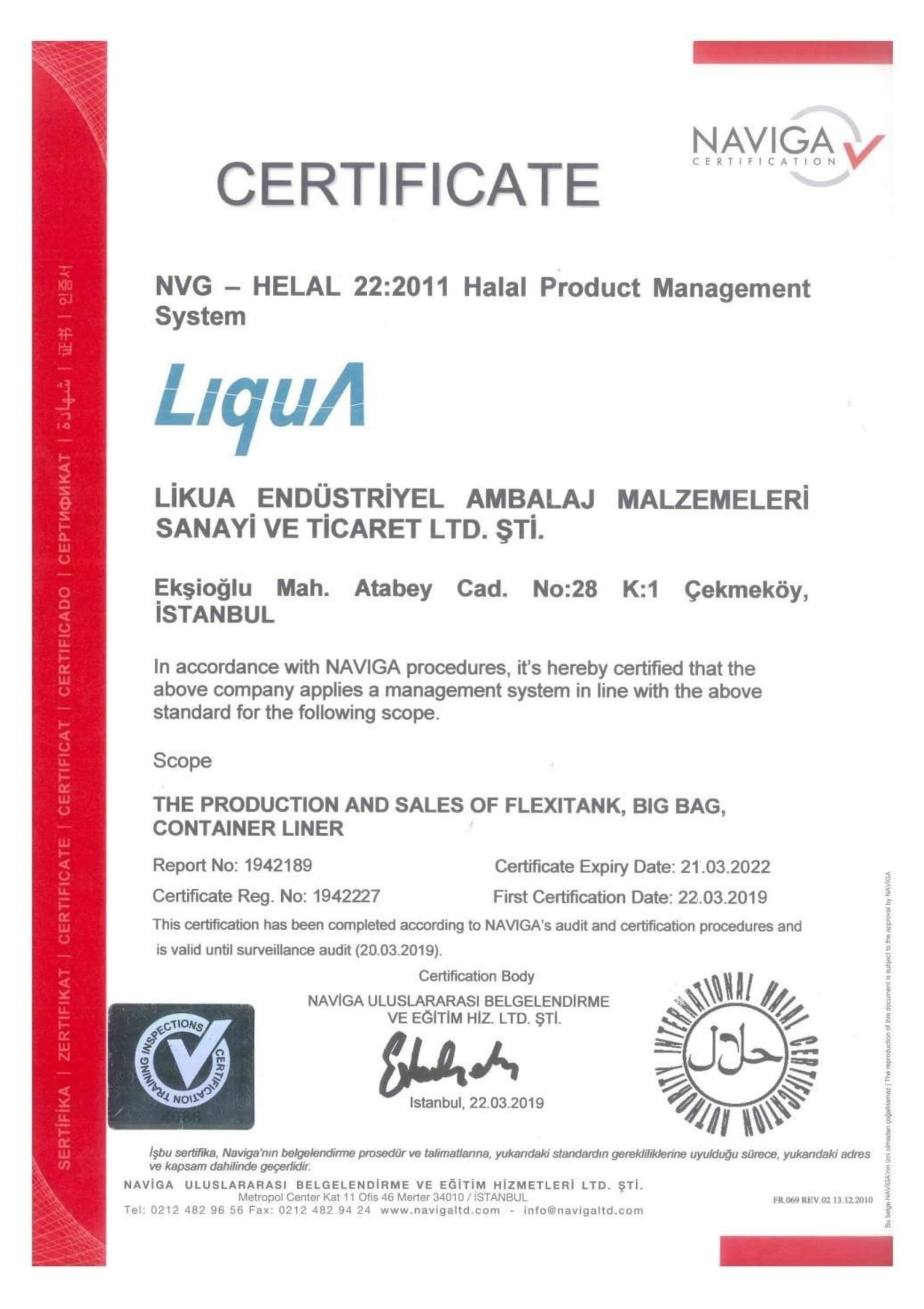 | Halal Product Managememnt Sysytem | Cerification that the business has manufactured the product in accordance with NAVIGIA procedures |